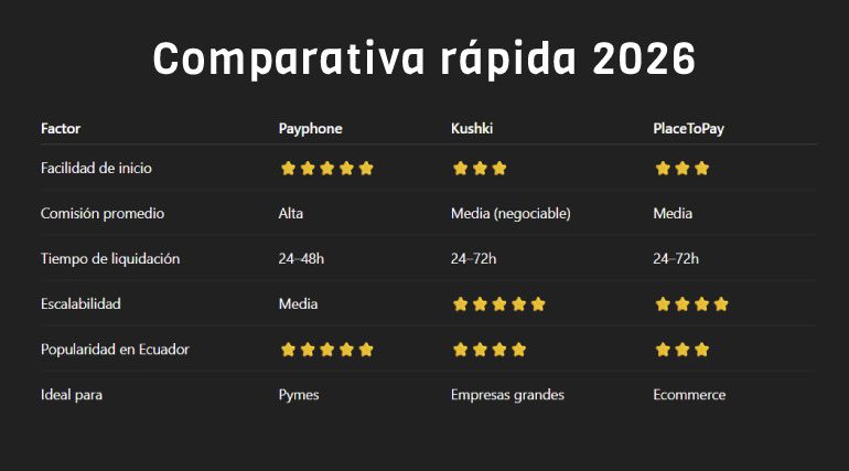 Botón de Pagos en Ecuador: Comparativa 2026 (Payphone vs. Kushki vs. PlaceToPay)